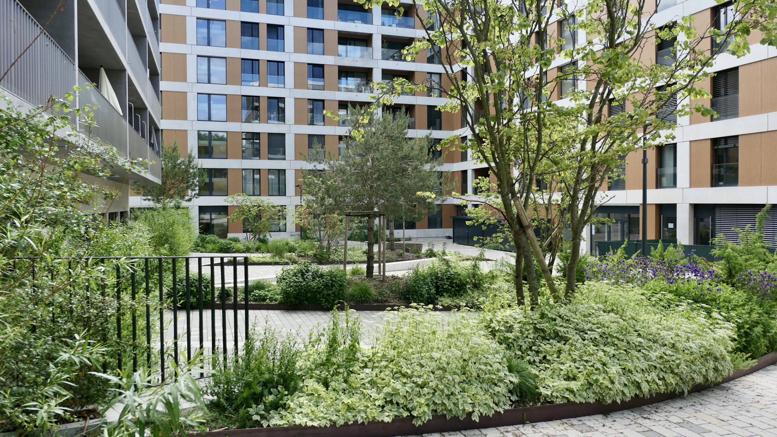 Les aménagements renforcent donc le respect des principes d’un quartier durable en contribuant à sa dimension sociale mais également à sa valeur environnementale. Des entités de verdure conjuguent aménagements favorables aux usages sociaux, à la nature et à la biodiversité. En effet la gestion des eaux par le biais de noues à ciel ouvert aboutissant à des bassins de rétention ainsi que la création de milieux variés et favorables à la biodiversité font partie intégrante de la proposition.